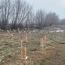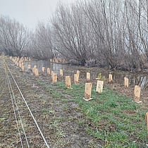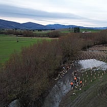The Becks Creek wetland was heavily invaded by dense layers of crack willow, which had taken over much of the ecosystem. As part of the Waiora Manuherekia project, aerial spraying was carried out by helicopter to control the willows, and their gradual removal will be undertaken by the landowner over time.